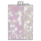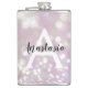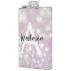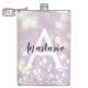 Girly pastel lilac shimmer bokeh glitter sparkles monogram name and initial flask. Personalise with your custom name in black and your monogram initial in white. You can change the text colour and font style and size using the customise option.
