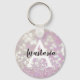 Girly pastel lilac shimmer bokeh glitter sparkles monogram name and initial keychain. Personalise with your custom name in black and your monogram initial in white. You can change the text colour and font style and size using the customise option.