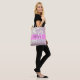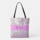 Girly pastel lilac shimmer bokeh glitter sparkles monogram name and initial tote bag. Your custom name and monogram are written in an elegant hand lettered script with a pink background. A perfect birthday or Christmas gift!