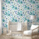 Girly Magical Blue Floral Unicorn Horse Pattern Wallpaper