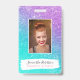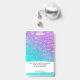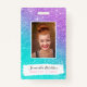 Girly mermaid purple glitter chic turquoise ombre ID badge