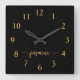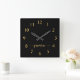 Girly Minimalist Black Gold Monogram Name Script Square Wall Clock