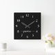 Girly Minimalist Monogram Name Script Black Square Wall Clock