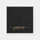 Girly Minimalist Simple Clean Black And Gold Monogram Name Signature Script Custom Personalised Paper Napkin. This design featuring your first name in a pretty hand lettered style swash tail font signature typography (or calligraphy) on black and gold background. These are easy to customise it. Great for birthday, wedding, sweet 16 birthday party, bridal shower, bachelorette party, baby shower, for graduation party and It’s for the girl who loves unique minimalist things.