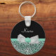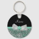 Girly Mint Green Cheetah Print Cute Bow and Name Key Ring