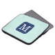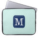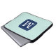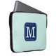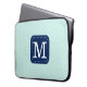 Stylish laptop sleeve with custom monogram on mint blue background.