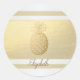 Girly Modern Gold Stripes, Gold Pineapple Classic Round Sticker