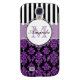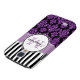 Modern girly purple glitter (printed) and black damask with black and white stripes pattern you can personalise with your monogram Initial and your name. Damask Gallery© Other colours and styles available in our shop at www.zazzle.com/DamaskGallery*. A cute design for her, the fashionista who wants a cute cool stylish monogrammed design.