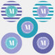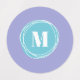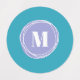 Girly and pretty labels with your monogram inside an abstract aqua blue or purple circle.