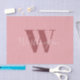 Customisable Monogram and Name written over the monogram in shades of pink and blush. The monogram is a big letter in dark pink red and the name is written in handwriting letters with very pale pink colour.