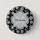 Add a chic and girly vibe to your personal style with this cute black and white daisy flower pattern button with a stylish framed monogram. Personalise this feminine floral name tag design by adding your name and monogrammed initial.