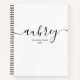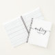 Minimalist notebook features name in handwriting font.