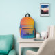 Indulge in vibrant style with our charming custom backpack adorned in playful, painted watercolor rainbow stripes. This fun and stylish backpack showcase a spectrum of colours including pink, peach, yellow, aqua, blue, purple, red and green, evoking a delightful and cheerful vibe. Featuring a monogram initial text template, personalise this backpack with your unique touch. Whether it's for school or casual outings, this cute and colourful backpack is an absolute delight for any girl who adores the vibrant charm of rainbows. Embrace the joy of colour and make a statement with every step!