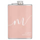 Girly Monogram Script Calligraphy Coral Blush Pink Hip Flask