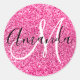 Girly Monogrammed Faux Hot Pink Glitter Classic Round Sticker