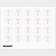 Classy modern serif letter T with a faux pale rose gold glitter effect against solid white classic round stickers.