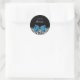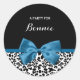 Girly Party Name Leopard Print Pretty Blue Bow Classic Round Sticker