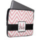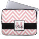 GIRLY, PERSONALIZED CORAL PINK CHEVRON PATTERN LAPTOP SLEEVE