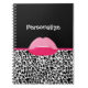 Girly Pink and Black Leopard Print Lips and Name Notebook