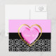 Say thank you with this girly thank you postcard with a trendy black and white giraffe print pattern and an elegant printed pink and gold heart. Blank on Back.