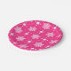 Girly Pink and White Snowflakes Christmas Pattern Paper Plate