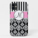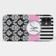 Girly, Pink, Black Damask Your Monogram Initial Case-Mate iPhone Case
