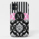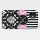 GIRLY PINK BLACK STRIPES DAMASK MONOGRAM Case-Mate iPhone CASE