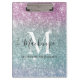 Girly Pink Blue Purple Glitter Monogram Name Clipboard