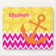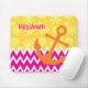 Girly Pink Chevrons Orange Anchor With Name Mouse Mat