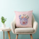 Girly pink cute wild animal with flowers nursery throw pillow for her. Beautiful girly little bear with colourful flowers on it's head is beautiful and nice to give like a birthday present. Pink background girly decoratvie pillow for girl bedroom.