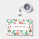 Girly Pink Flowers Green Leafs Pattern ID Badge