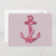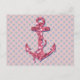 GIRLY PINK GLITTER ANCHOR DOTS PATTERN POSTCARD