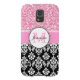 Girly, Pink, Glitter Black Damask Personalised Case-Mate Samsung Galaxy Case
