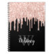 Girly Pink Glitter Drip Grey Monogram Notebook