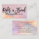 This is the perfect Refer a Friend Discount Card for a trendy, stylish, and modern business. This design features chic, girly, and pretty black brushstroke typography on a glamourous and girly faux printed pink glitter with pink, peach, blue, and purple iridescent ombre gradient background. These cards will add that personal and professional touch to your business and career advertisement.