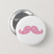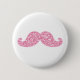 GIRLY PINK GLITTER MUSTACHE PRINTED 6 CM ROUND BADGE