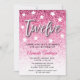 Modern simple girly 12th birthday party invitation. Design features glitter texture ombre (please note no real glitter wil be used, this is digital illustration) and trendy ''twelve'' in white color and stars around. Party details are on the front of invitation in modern black font. To edit this design please click customize further.