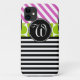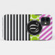 GIRLY, PINK, BLACK STRIPES AND LIME GREEN POLKA DOTS PATTERN iPHONE 5 CASE. ELKE CLARKE© FOR MONOGRAM GALLERY. Personalise this stylish iPhone case as a gift for her with a monogram initial in your colour and font choice to create a trendy, chic monogrammed cell phone case. Want different colours? Please contact store owner.
