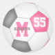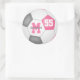 girly pink grey soccer ball personalised classic round sticker
