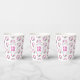 These volleyball themed birthday party paper cups feature multiple small stylised pink, grey & white volleyballs arranged in a simple drop pattern - text on a white circle graphic can be customised, currently the number 12 to represent a child's age encircled by the words, "Happy birthday" - by katz_d_zynes