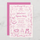 Girly Pink Hand Drawn Galentine's Pajama Party Invitation