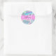 Girly Pink Holographic Iridescent Monogram Name Classic Round Sticker