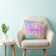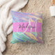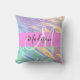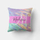 Girly pink, peach and aqua holographic iridescent monogram name and initial throw pillow. Your custom name and monogram are written in an elegant hand lettered script with a pink background. A perfect birthday or Christmas gift!