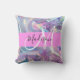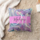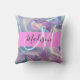 Girly pink, purple and aqua holographic iridescent monogram name and initial throw pillow. Your custom name and monogram are written in an elegant hand lettered script with a pink background. A perfect birthday or Christmas gift!