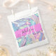 Girly pink, aqua and turquoise holographic iridescent monogram name and initial favour bags. Your custom name and monogram are written in an elegant hand lettered script with a pink background. A perfect birthday or Christmas gift!
