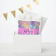 Girly pink, peach and aqua holographic iridescent monogram name and initial favour bags. Your custom name and monogram are written in an elegant hand lettered script with a pink background. A perfect birthday or Christmas gift!