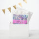 Girly pink, purple and aqua holographic iridescent monogram name and initial favour bags. Your custom name and monogram are written in an elegant hand lettered script with a pink background. A perfect birthday or Christmas gift!