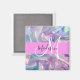 Girly pink, purple and aqua holographic iridescent monogram name and initial magnet. Your custom name and monogram are written in an elegant hand lettered script with a pink background. A perfect birthday or Christmas gift!