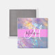 Girly pink, peach and aqua holographic iridescent monogram name and initial magnet. Your custom name and monogram are written in an elegant hand lettered script with a pink background. A perfect birthday or Christmas gift!