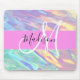 Girly Pink Holographic Iridescent Monogram Name Mouse Mat